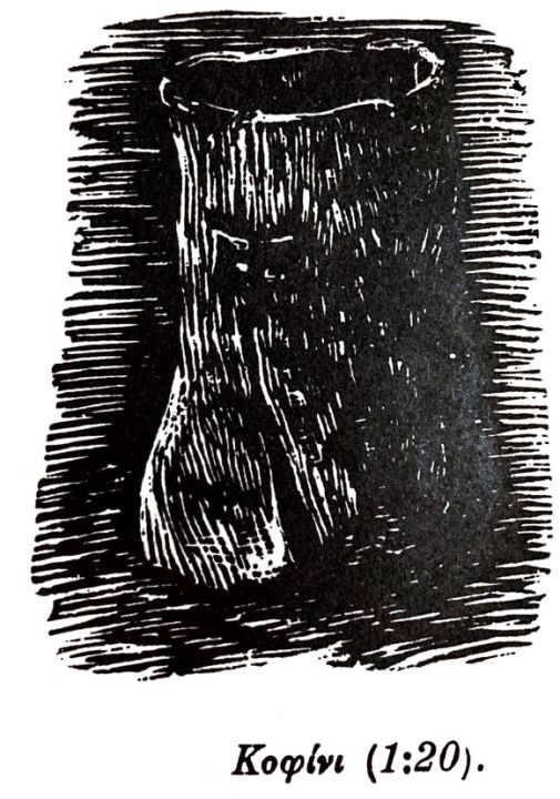 Το κοφίνι είναι είτε ένα πραγματικό κοφίνι, δηλαδή κάλαθος, είτε ομοίωμα καλάθου από κορμό δέντρου (έλατο, δέντρο ή πλάτανος). Ήταν ανοικτό και από τα δύο άκρα, με δύο στόμια.