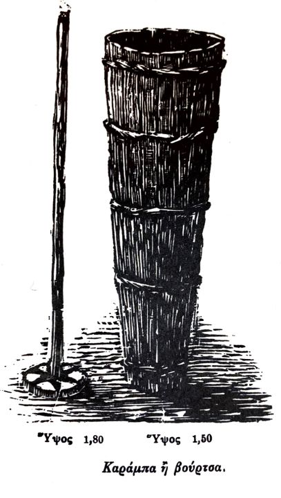 Είναι ένας στενός κάδος στον πυθμένα και ανοικτότερος στο στόμιο από ξύλο. Τοποθετείται όρθιος και επί δύο, τρεις ή τέσσερις μέρες χύνεται εντός του το γάλα από το ποίμνιο. Μέσα σε αυτό το δοχείο το γάλα υφίσταται ζύμωση κι αρχίζει να ξινίζει. Για να γίνει βούτυρο πρέπει να δαρθεί αρκετά εντός της καράμπας με το βουτσόξυλο ή καραμπόξυλο. Μετά από ώρα χτυπήματος το βούτυρο αρχίζει να επιπλέει στην επιφάνεια και συλλέγεται. Το γάλα που απέμεινε είναι το «ξινόγαλο».