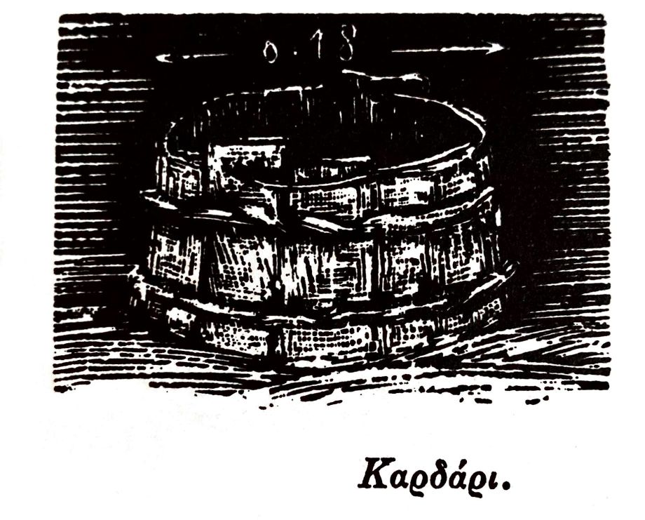 Κατασκευαζόταν από τους γανωτήδες της εποχής και χρησιμοποιούνταν για την παραγωγή τυριού. Ήταν ένα μεγάλο χάλκινο καζάνι μέσα στο οποίο έβραζαν το γάλα, έβαζαν μετά την πυτιά κι έπηζαν το τυρί. Διαφέρει από το κλασικό καζάνι καθώς έχει στόμιο ευρύτερων διαστάσεων από τον πυθμένα