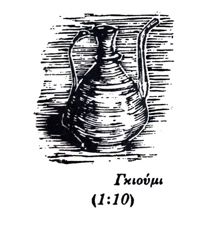 Πρόκειται για χάλκινο δοχείο που χρησιμοποιούνταν για υγρά με κομψό λαιμό, ωραίο στόμιο το οποίο φέρει και κρουνό καθώς και το λεπτοφυές «μποτσινάρι». Η κύρια χρήση του γκιουμιού ήταν για το νίψιμο καθώς κάποιος μπορούσε εύκολα να νιφθεί μόνο με το γκιούμι χωρίς τη χρήση της «λιένης» (βλ.παρακάτω).