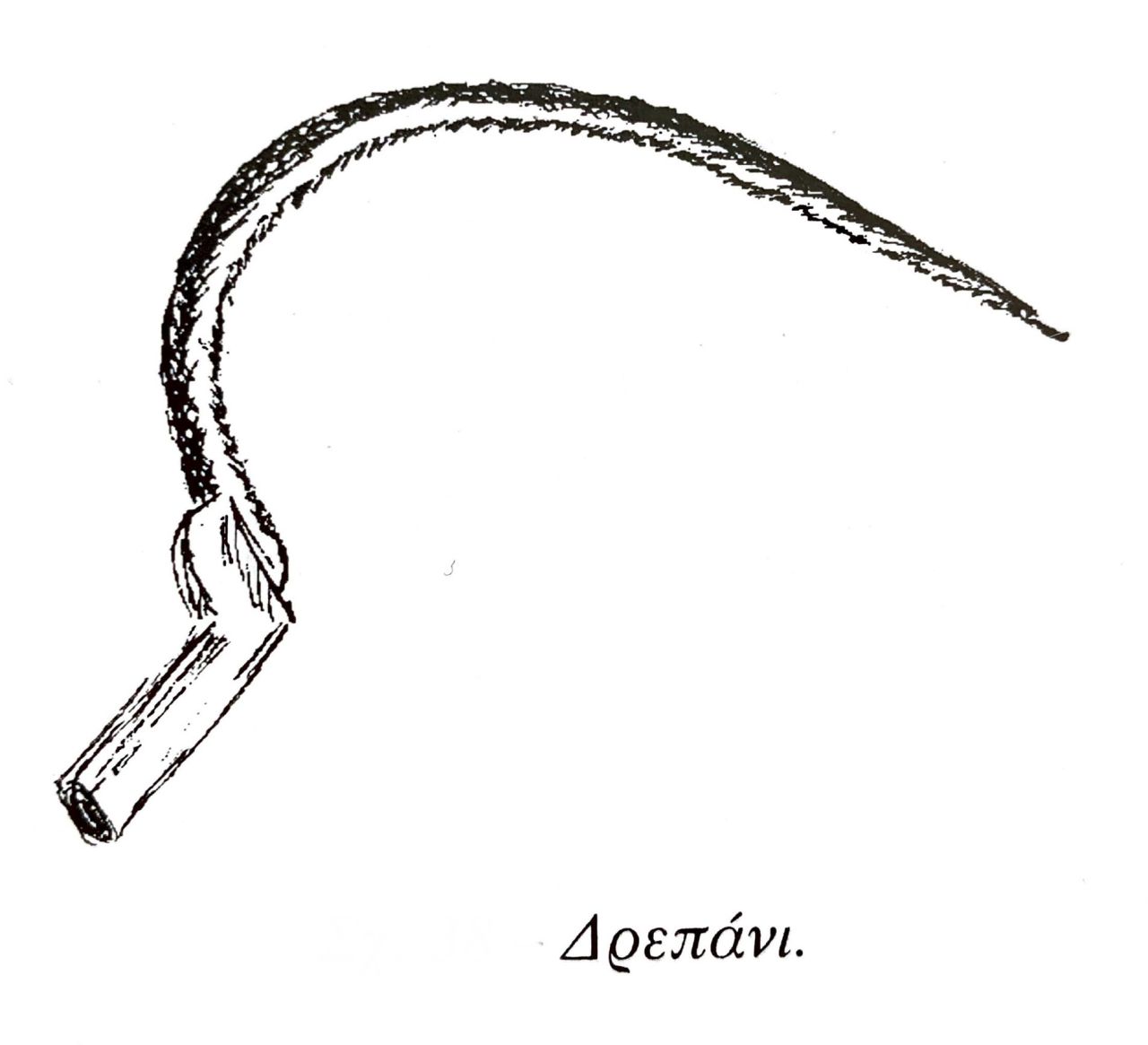 Η ακόλουθη διαδικασία του οργώματος ήταν η συγκομιδή κατά την οποία χρησιμοποιούσαν χρήσιμα εργαλεία κοπής, τα δρεπάνια.