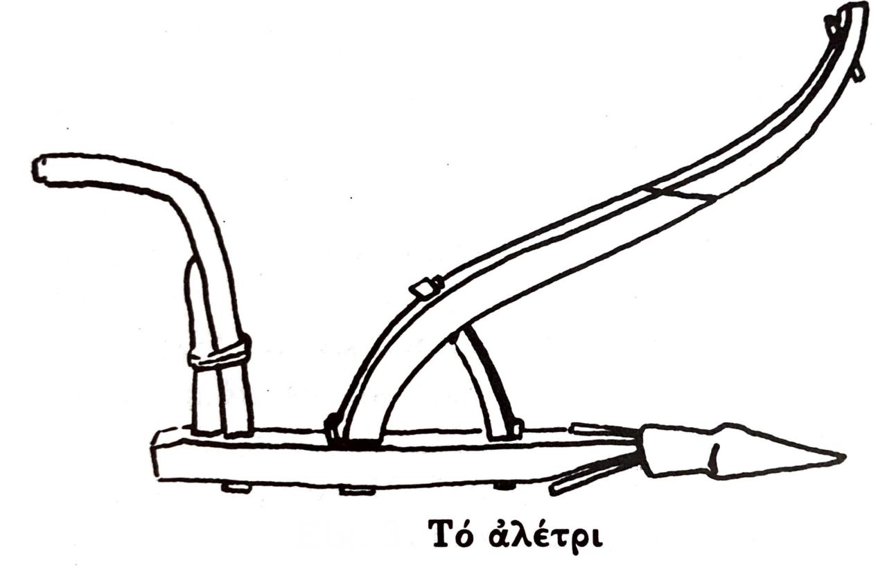 γ) αλετρονουρά ή χερουλάτης (αρχ. εχέτλη). Ήταν μαζί με τις τριχιές του ζώου το σύστημα διεύθυνσης του αρότρου.