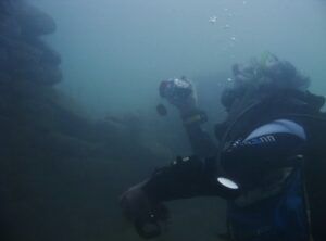 «Ο όγκος εντοπίστηκε σε βάθος 30 μέτρων! Η ορατότητα όμως ήταν τρομερά περιορισμένη λόγω της υψηλής περιεκτικότητας σε φερτές ύλες και κοκκινόχωμα από τα ποτάμια που εκβάλλουν στη λίμνη. Ήταν σαν να καταδύεσαι σε λάσπη» θυμάται ο 49χρονος κ. Γιώργος Κυπραίος